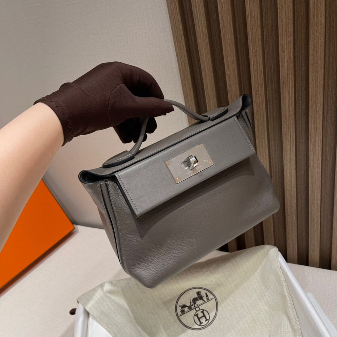 H**mes jypsiere mini bag in swift leather gris meyer